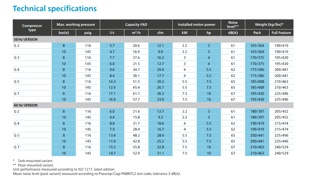 The G 2-7 models are the smallest screw compressors in our product portfolio, yet they deliver powerful performance in every aspect. They are the ideal solution for small businesses, workshops, and operations looking to scale up with modest compressed air requirements.