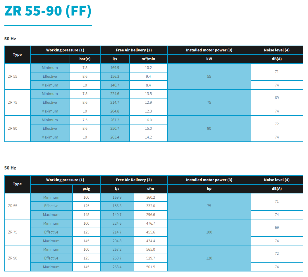 Atlas Copco ZR/ZT 55 - 90KW Oil-free screw air compressors